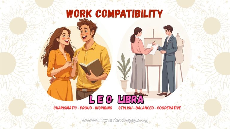 At work, Libra thrives in partnerships. They love sharing ideas, mediating disagreements, and finding win–win solutions. However, their tendency toward indecision can slow progress if they’re not guided by someone with clear direction — like Leo.